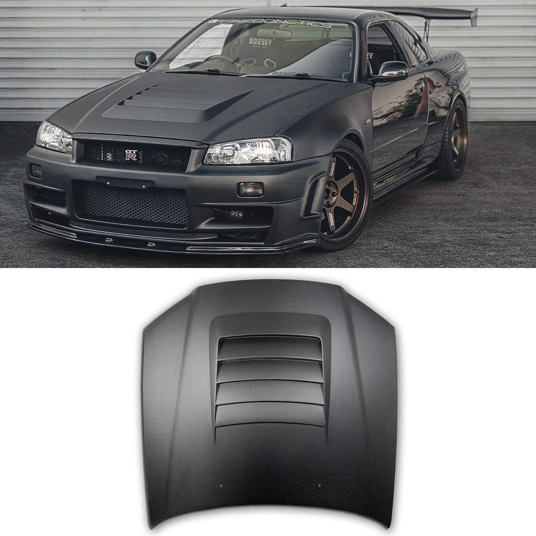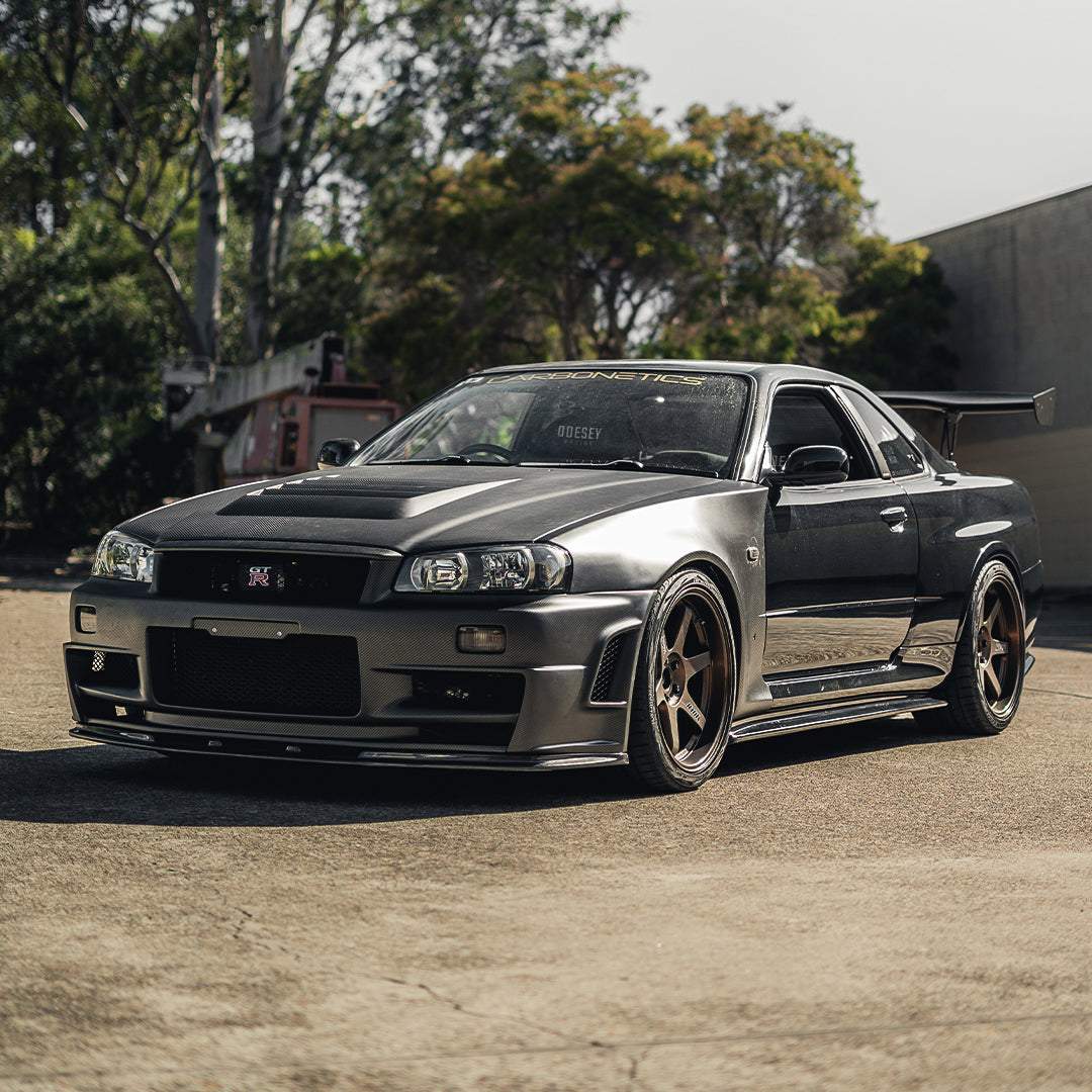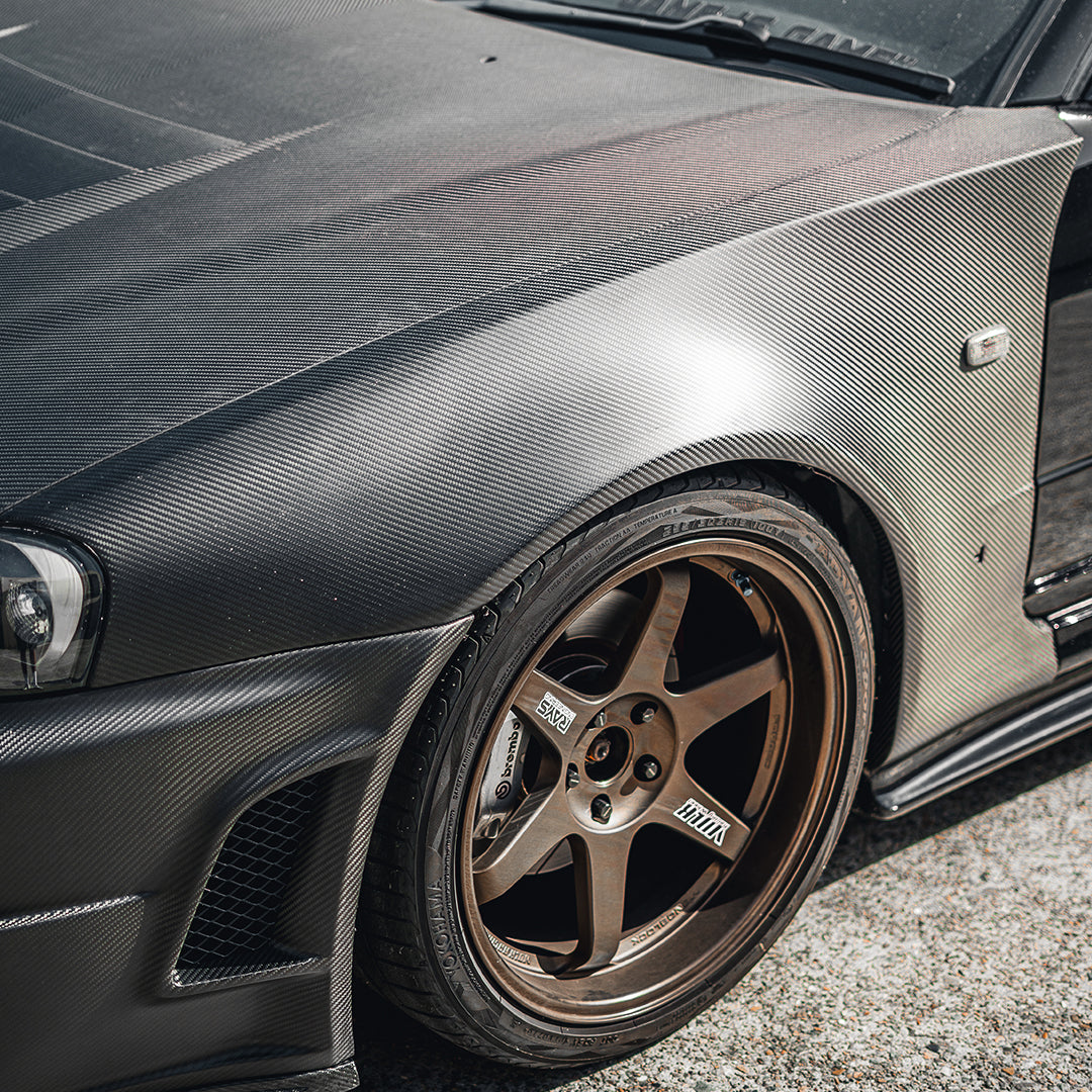 R34 GTR Z-Tune Dry Carbon Front End is the missing piece to the puzzle to elevate your build. Engineered for enthusiasts chasing factory-level execution with modern motorsport materials. This complete package includes the Z-Tune style hood, front fenders, and front bumper, all constructed using pre-preg (dry) carbon fibre for maximum strength, minimal weight, and a premium surface finish.