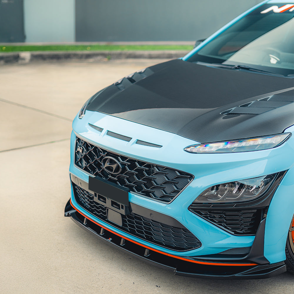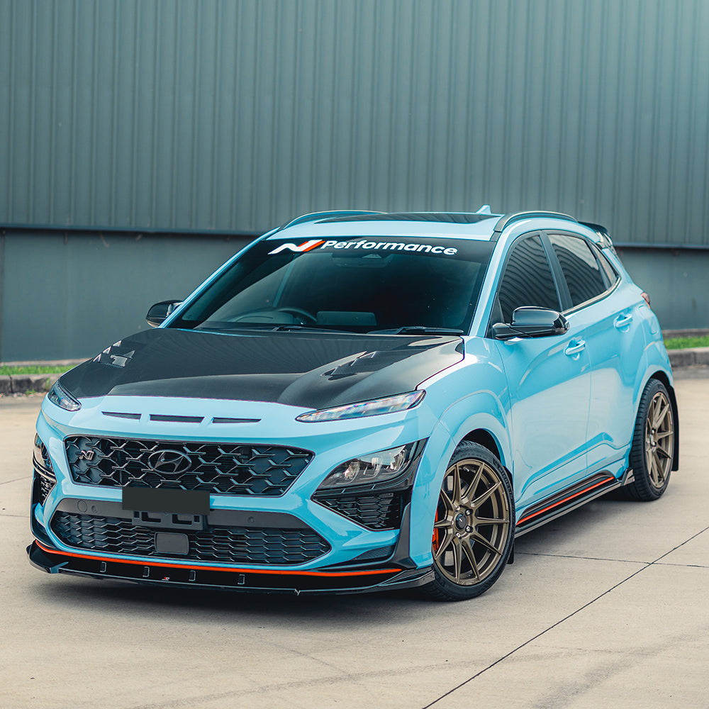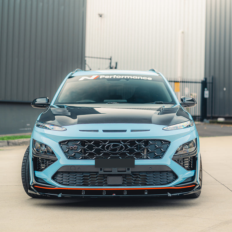 Transform your Kona with a lightweight carbon hood engineered for improved cooling, reduced weight, and an aggressive N-Spec look. Precision-moulded for strength and durability, this premium carbon hood enhances airflow and sharpens your front-end styling. A must-have upgrade for any 2017+ Hyundai Kona build.